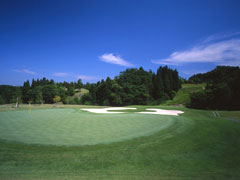 ベントグリーン右2本杉方向はセーフゾーンが狭くO.Bになりやすい。グリーン手前左を攻めたほうがよい。