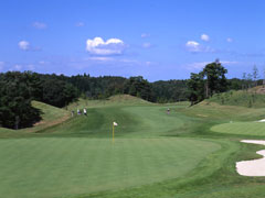 緩い打ち上げでフェアウェイは幅の広いミドルホール。