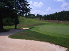 第2打地点からはベントグリーン右側のガードバンカー横がO.Bのためグリーン左手前から攻めるとよい。グリーン面は2箇所大きな波型になっている。